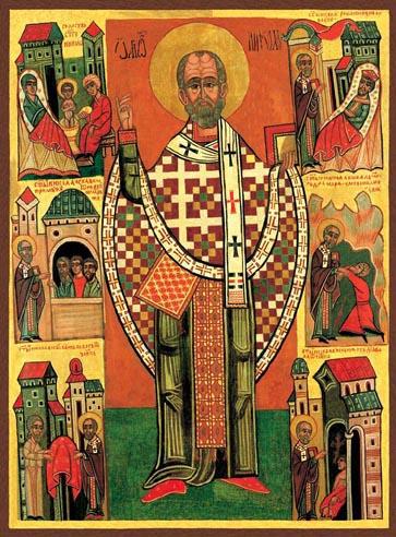 Mikołaj urodził się w Patras w Grecji ok. 270 r. Był jedynym dzieckiem zamożnych rodziców, uproszonym ich gorącymi modłami. Od młodości wyróżniał się nie tylko pobożnością, ale także uczuleniem na niedolę bliźnich. Po śmierci rodziców, swoim znacznym majątkiem, chętnie dzielił się z potrzebującymi. Tak np. ułatwił zamążpójście trzem córkom zubożałego szlachcica, podrzucając im skrycie pieniądze. O tym wydarzeniu wspomina Dante w swoim eposie. Wybrany na biskupa miasta Miry (obecnie Demre) podbił sobie serca wiernych nie tylko gorliwością pasterską, ale także troskliwością o ich potrzeby materialne. Cuda, które czynił, przysparzały mu większej jeszcze chwały. Kiedy cesarz Konstantyn I Wielki skazał trzech młodzieńców Miry na karę śmierci za jakieś wykroczenie, nieproporcjonalne do aż tak surowego wyroku, św. Mikołaj udał się osobiście do Konstantynopola, by uprosić dla swoich wiernych ułaskawienie.